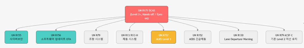 | UN R157 (ALKS) | 상위 단계 | DCAS가 Level 3으로 진화할 때 자연스럽게 이어짐 |
